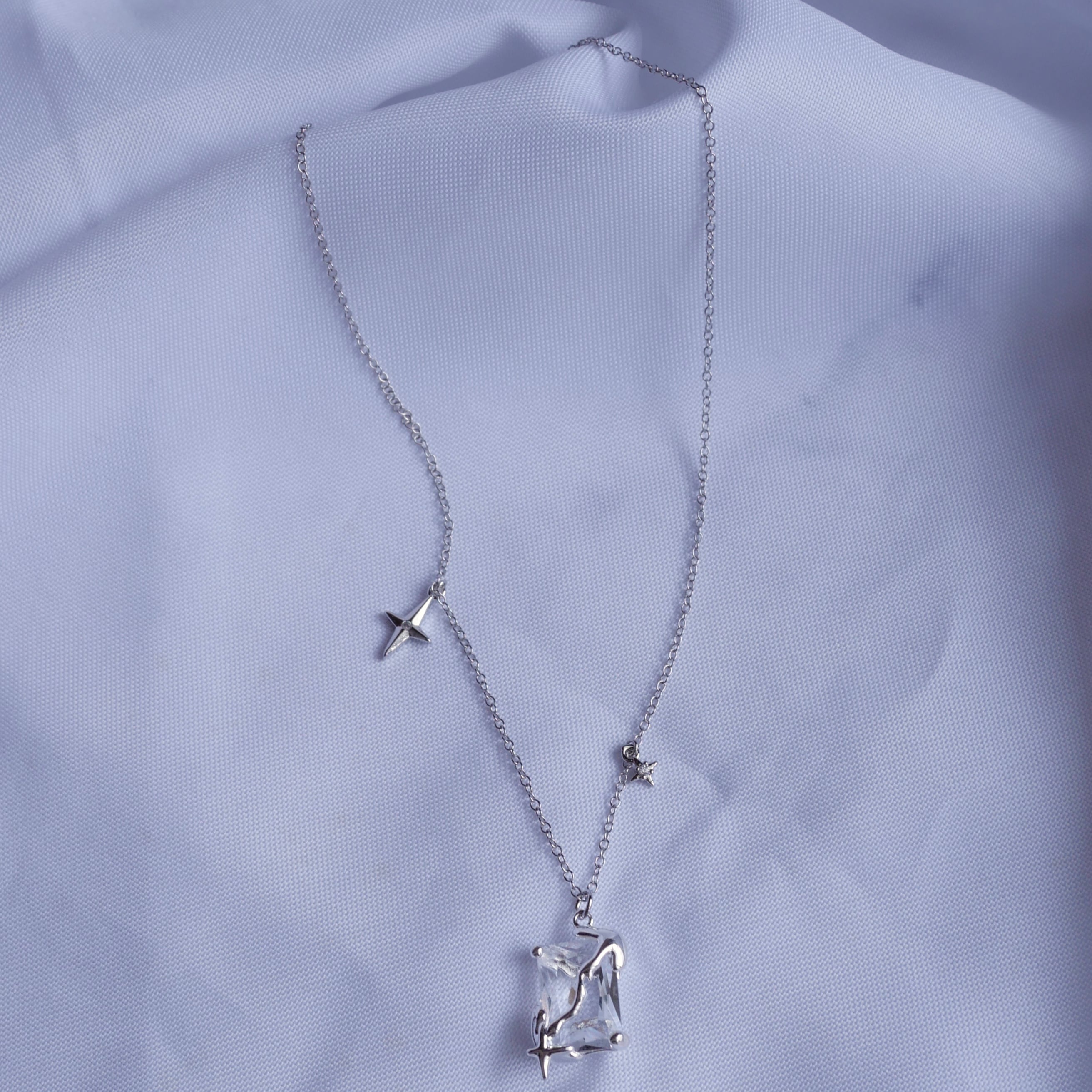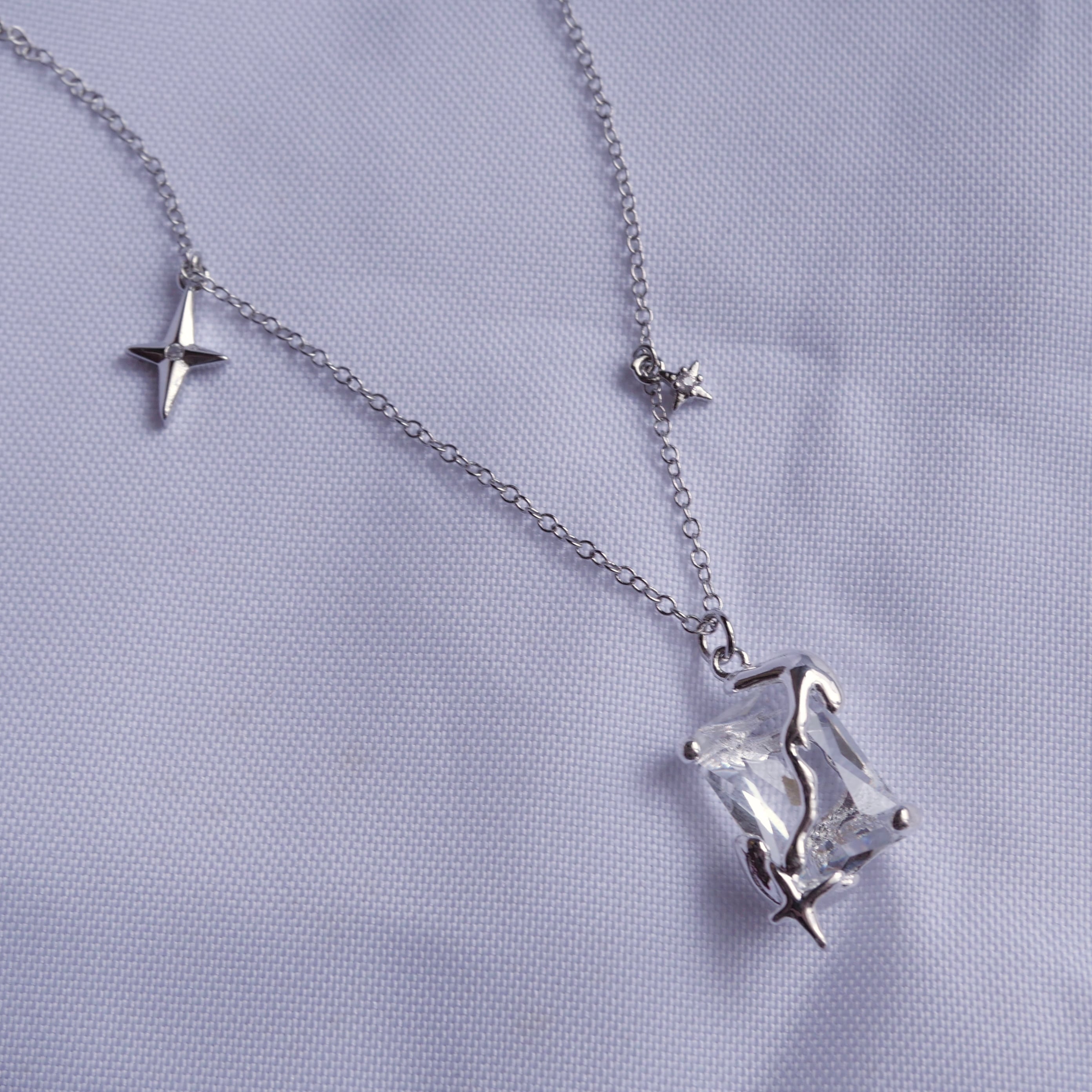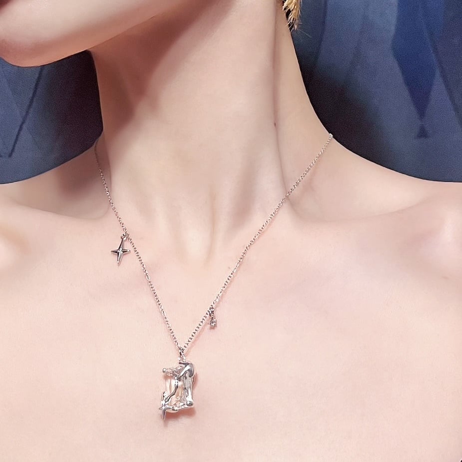 ジルコニアを変形シルバーで覆ったデザインネックレス。Shinyシリーズで揃えたくなります。