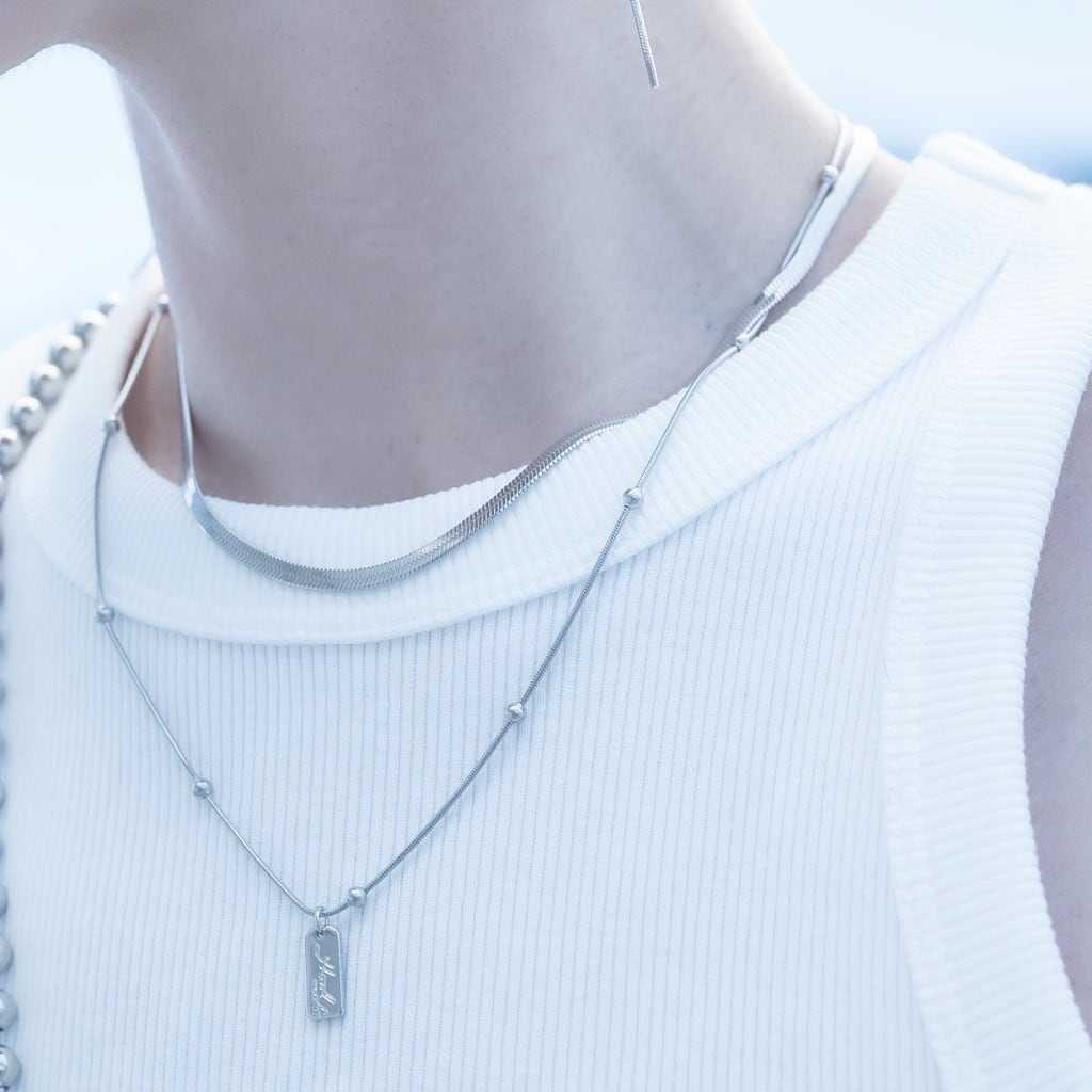 ボールチェーンを組み合わせたネックレス。