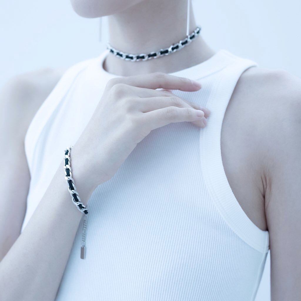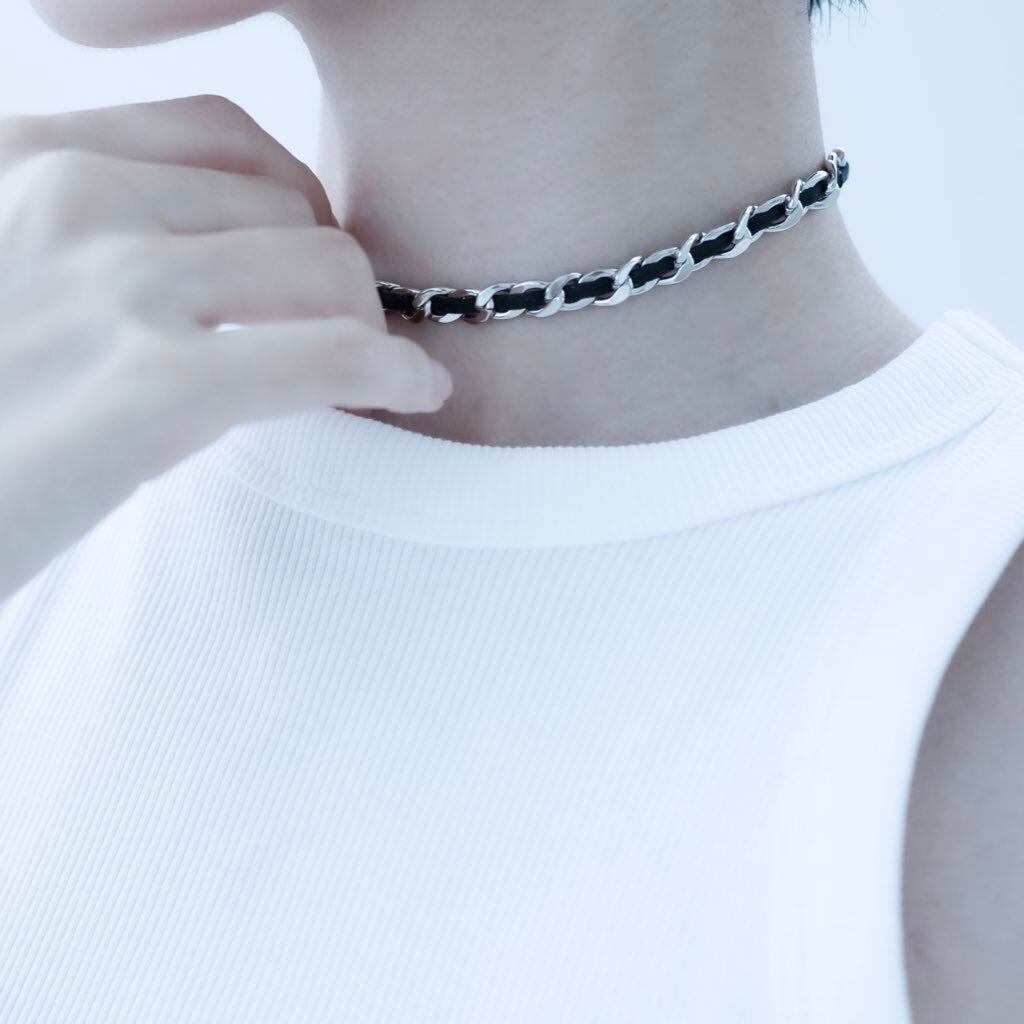 Chain black belt bracelet.と対のネックレス。